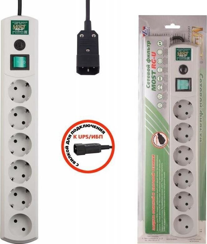 MOST Сетевой фильтр RG-U 1.5м (6 розеток) белый (коробка)