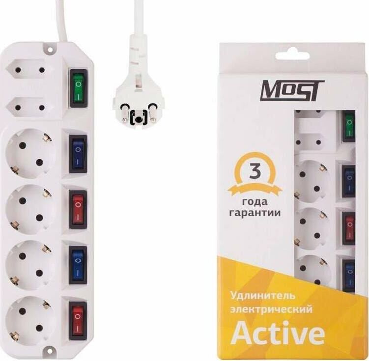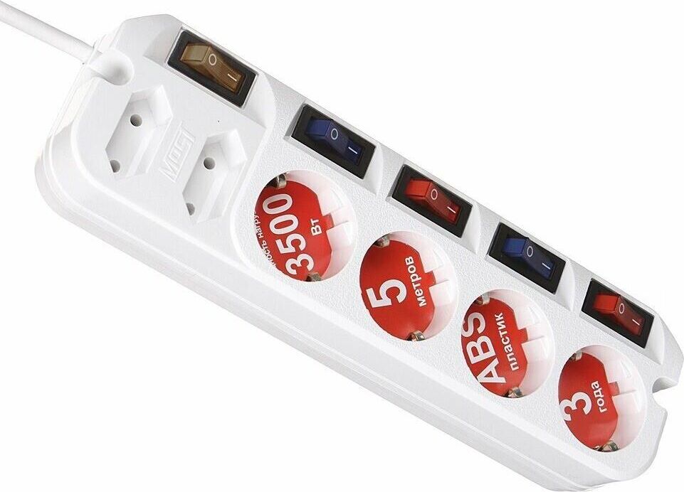 MOST Сетевой удлинитель A16 5м (6 розеток) белый (коробка)