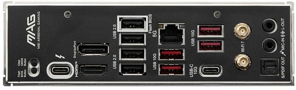 Сокет: Socket LGA 1851. Частотная спецификация памяти: 6400. Максимальный объем оперативной памяти: 256. Встроенный Wi-Fi: есть. Звук: 8 каналов (7.1). Сетевой интерфейс (Ethernet RJ-45): 5Gigabit. Форм-фактор: ATX. Тип поставки: Ret. Кол-во внешних USB 2.0: 4. Поддерживаемые процессоры: совместимость уточняйте на сайте производителя. Поддержка частот оперативной памяти: 6400-4800/OC-9200-6400. Поддерживаемые модули памяти: совместимость уточняйте на сайте производителя. Режим работы оперативной памяти: двухканальный. Сетевой контроллер: Intel Killer E5000. Аудио контроллер: Realtek ALC897. Встроенный Bluetooth: есть. Форм-фактор поддерживаемой памяти: DIMM. Разъем S/PDIF (оптический): 1. Разъемов Display Port: 1. Разъемов HDMI: 1. Особенности: Для корректной работы функций Wi-Fi 7 требуется Windows 11 SV3.. Количество разъемов с поддержкой Thunderbolt: 1. Разъемов M.2: 3. Особенности внутренних разъемов: Если вы установите SSD 22110 в слот M2_2, слот M2_3 будет поддерживать только SSD 2242/2260.. Количество