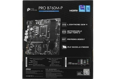 MSI Материнская плата PRO B760M-P Soc-1700 Intel B760 4xDDR5 mATX AC`97 8ch(7.1) GbLAN+VGA+HDMI+DP