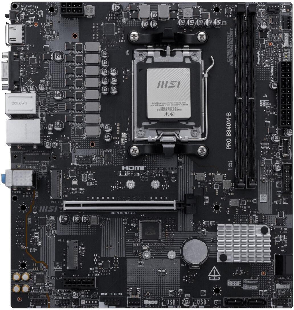 MSI Материнская плата PRO B840M-B Socket AM5 AMD B840 2xDDR5 mATX AC`97 8ch(7.1) 2.5Gg RAID+VGA+HDMI