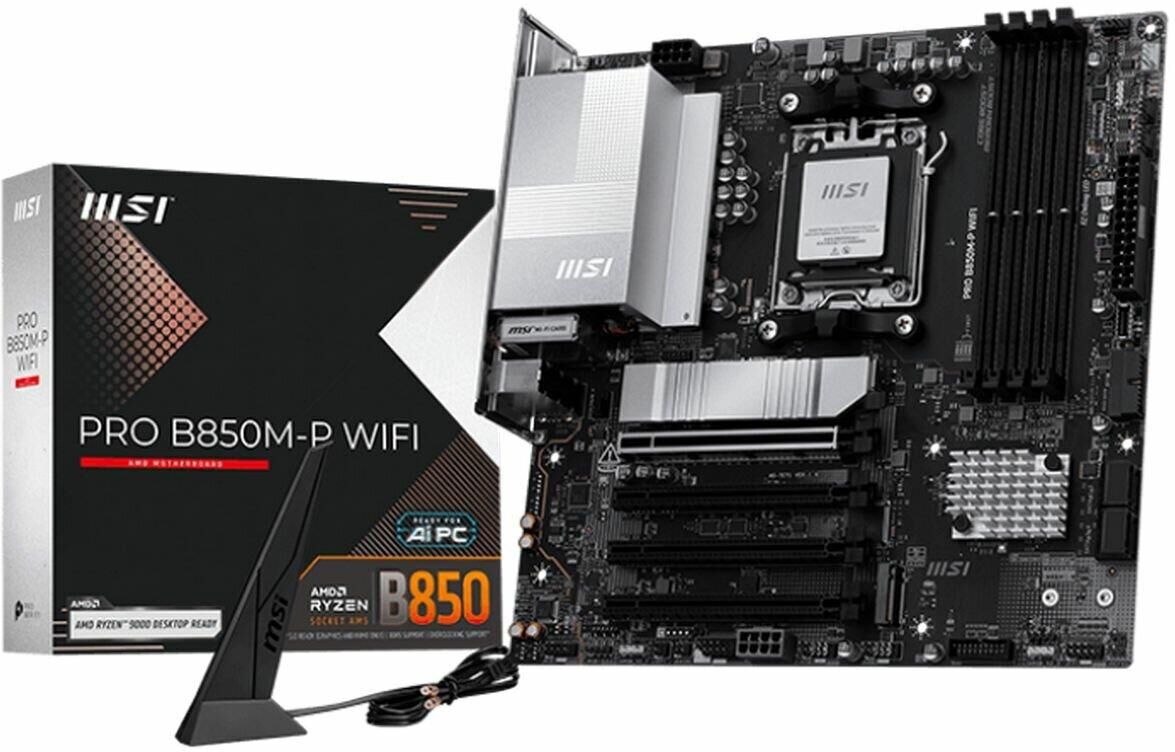 MSI Материнская плата PRO B850M-P WIFI Socket AM5 AMD B850 4xDDR5 mATX AC`97 8ch(7.1) 5Gigabit RAID+