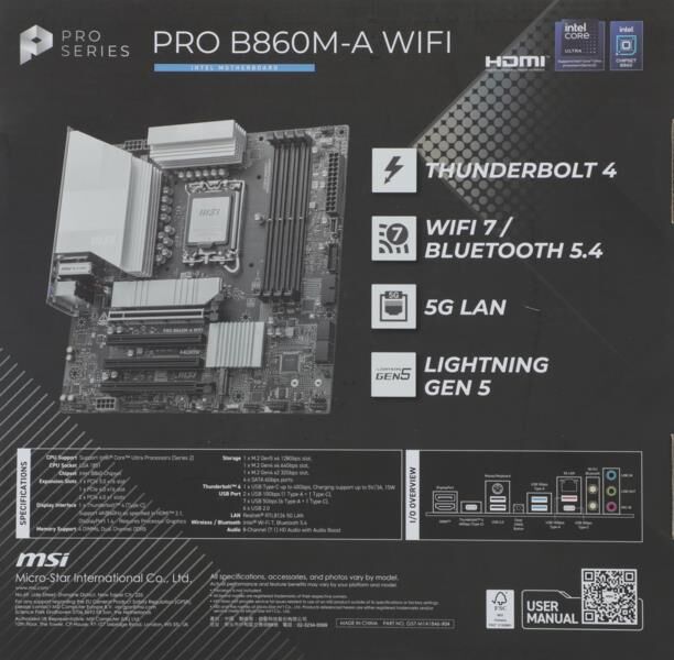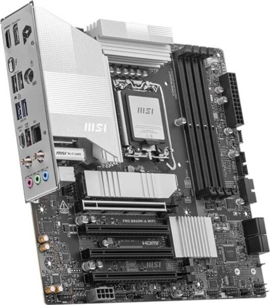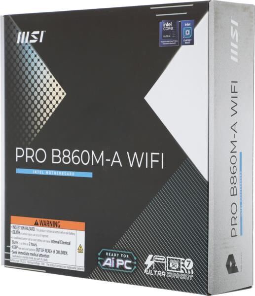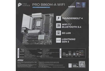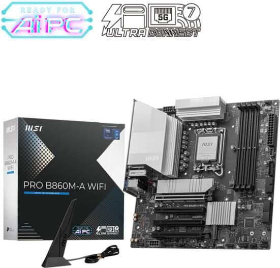 Материнская плата MSI PRO B860M-A WIFI B860, LGA1851, 4*DDR5, 4*PCIEx16, 3*M.2, 2*TypeC, 3*USB3.2Gen2, 6*USB3.2Gen1, 2*USB2.0, 4*SATA3.0, 5G, Type-C(DP), DP, HDMI, M-ATX, RTL