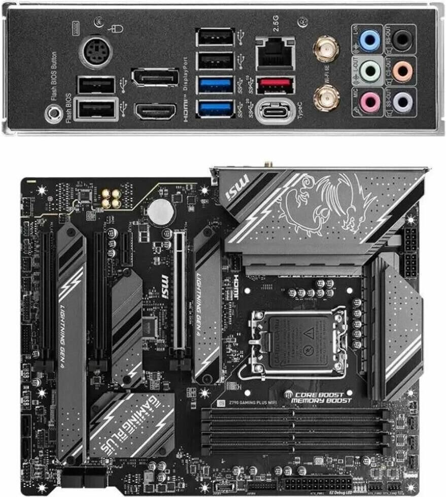 MSI Материнская плата Z790 GAMING PLUS WIFI (LGA1700, ATX, Z790, 4xDDR5, RAID, 2xPCI-Ex16, 4xM.2, HD