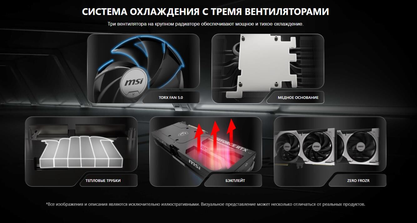 Тип видеопамяти: GDDR7. Использование тепловых трубок: есть. Тип поставки: retail. Техпроцесс: 4. Частота видеопамяти: 30000. Разъемов HDMI: 1. Количество разъемов DisplayPort: 3. Разъемы дополнительного питания: 16 pin. Рекомендуемая мощность блока питания: 850. Система охлаждения: активное. Длина видеокарты: 303. Максимальное энергопотребление: 360. Версия разъема HDMI: 2.1b. Версия разъема DisplayPort: 2.1a. Конструкция системы охлаждения: трехслотовая. Поддержка трассировки лучей: есть. Поддержка DLSS: есть. Габариты упаковки (ед) ДхШхВ: 0.385x0.23x0.09. Вес упаковки (ед): 1.93. Высота видеокарты: 121. Количество поддерживаемых мониторов: 4. Толщина видеокарты: 49. Архитектура графического процессора: Blackwell. Количество вентиляторов: 3. Название системы охлаждения: TORX Fan 5.0. Поддержка DirectX: DirectX 12 Ultimate. Поддержка OpenGL: OpenGL 4.6. Тип вентилятора: осевой. Число процессоров (ядер) CUDA: 10752. Объем видеопамяти: 16. NVIDIA SFF-Ready: ДА. Гарантия: 36 мес.. Видеочипсет: NVIDIA GeForce RT
