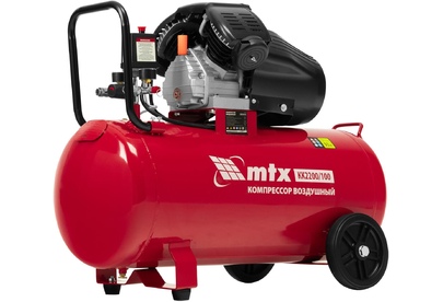 Масляный воздушный компрессор MTX KK-2200/100 58033 мощностью 2,2 кВт, с прямым приводом, оснащен ресивером объемом 100 л, рассчитан на давление до 8 бар и обеспечивает производительность на уровне 350 л/мин. Предназначен для обеспечения работоспособности пневматического инструмента: гайковерта, шлифовальной машины, шуруповерта, краскораспылителя и т.д. Мощный и производительный компрессор будет полезен на строительной площадке, в гараже, на предприятии автосервиса. Преимущества Надежность — двигатель с V-образным расположением цилиндров стабильно работает на протяжении всего срока эксплуатации. Долговечность — чугунные цилиндры медленно нагреваются, обеспечивая износостойкость компрессорной части. Безопасность пользователя — двигатель и верхняя часть цилиндров закрыты прочным защитным кожухом. Автономная работа — прессостат обеспечивает автоматическую остановку двигателя по достижении максимального рабочего давления и запуск при падении давления до минимального уровня. Защита по току — при перегрузке двигате