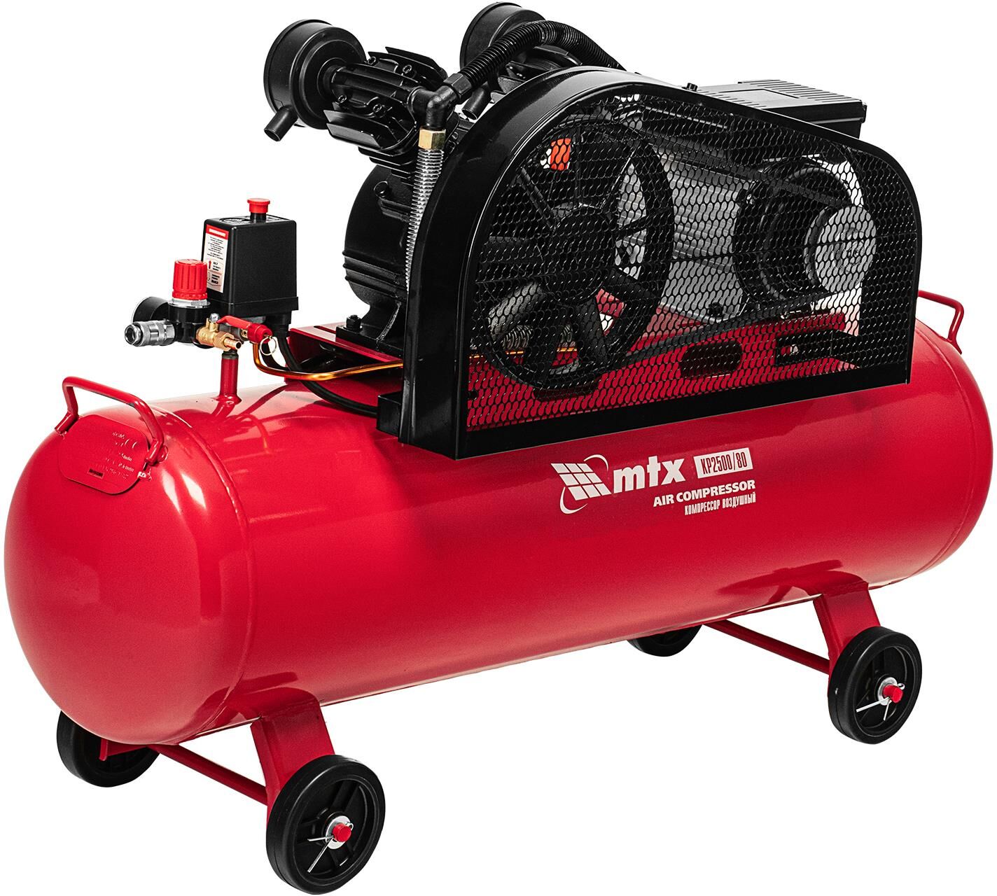 MTX Компрессор воздушный ременный привод КР2500/80, 2,5 кВт, 80 литров, 420 л/мин МТХ 58022