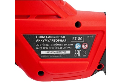 MTX Пила сабельная аккумуляторная RС-80, Li-Ion, 20 В 28812