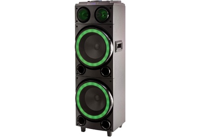 Мидисистема с Bluetooth, Максимальная мощность: 1000 Вт, RMS: 150 Вт, Корпус из МДФ, 7 цветная RGB подсветка, Микрофон проводной в комплекте, Воспроизведение музыкальных файлов в формате MP3/WMA/FLAC/WAV/APE/AAC, FM тюнер, TWS функция, Полнофункциональный пульт дистанционного управления, Функция караоке, 2 входа для подключения микрофона, Регулировка низких и высоких частот, Эхо-эффект канала микрофона, USB разъем, TF разъем, Двухканальный линейный вход, Питание: ~100 - 240 В, 50-60 Гц, Встроенный аккумулятор:12 Вольт, 7000 мАч