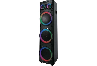 Акустическая система с Bluetooth, FM радио, и TWS. Выходная мощность: (RMS) 100Вт Настраиваемая светодиодная подсветка. Частотный диапазон: 40Гц-20КГц. Диапазон частот FM тюнера: 87,5 - 108МГц. Размеры динамиков - низкочастотный динамик 10"*3, твитер -3"*2шт. Bluetooth V5.0. Воспроизведение музыки с носителей памяти - USB, TF card Вход: USB, вход для микрофона, вход для гитары, AUX, TF card. Регулировка громкости микрофона, уровня эхо. Функция регулировки эквалайзера. Функция TWS Светодиодный дисплей. Встроенная аккумуляторная батарея 12В, 7000 мAч. Внешнее питание: AC 110-220В. Корпус: МДФ + ABS пластик. Дистанционный пульт управления. Размеры изделия, мм - 340*305*1330. Вес:20.7 Кг.