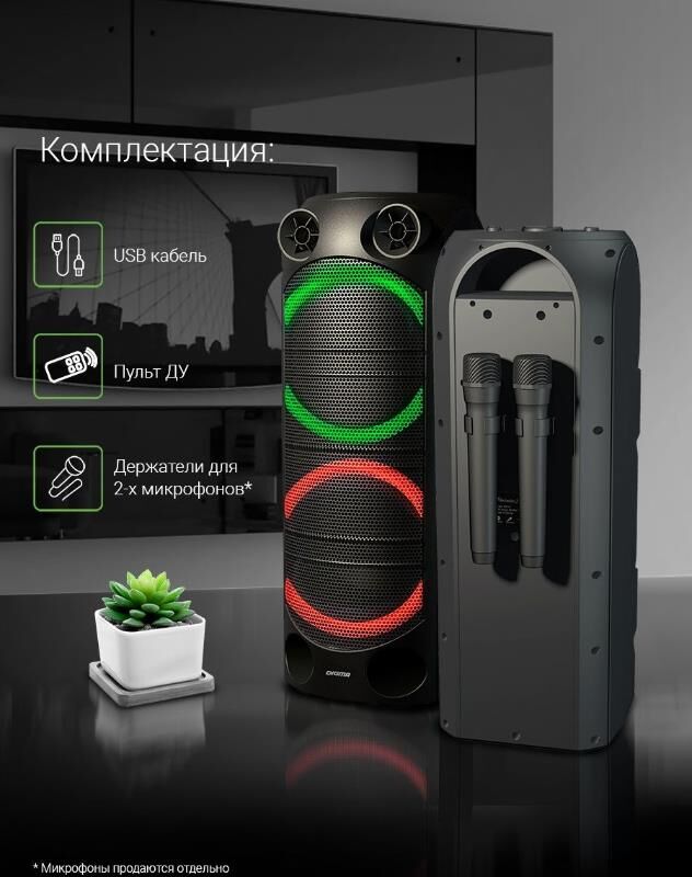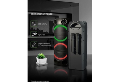 Особенности караоке, ЖК-дисплей, пульт ДУ, тюнер FM, эквалайзер Габариты и вес с учетом упаковки Габариты транспортной упаковки 29x30x69 Вес в килограммах с учетом упаковки 6.4