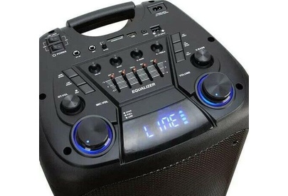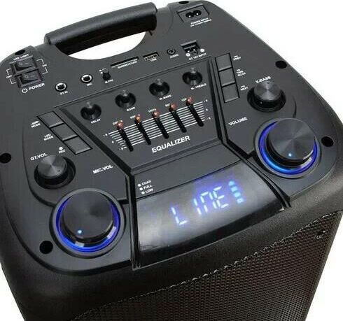 "Режимы воспроизведения: - Bluetooth - FM - Внешний накопитель - Aux Мощность: - RMS 100 Ватт - PMPO 1000 Ватт Питание: - 220V - Встроенный аккумулятор 12В 7А (до 5 часов работы) Разъемы: - USB - SD - AUX - Jack 6.3 мм (микрофон-гитара) 2 шт. Комплектация: - Колонка - Кабель AUX - 2 Беспроводных микрофона - Пульт ДУ - Инструкция Размеры: Ширина - 40 см Высота - 86 см Глубина - 34 см Дополнительно: LED посветка Регулировка громкости микрофона Дисплей Приоритет микрофона Регулировка эхо микрофона Удобная ручка для переноски Колесики 5 полосный эквалайзер"