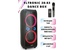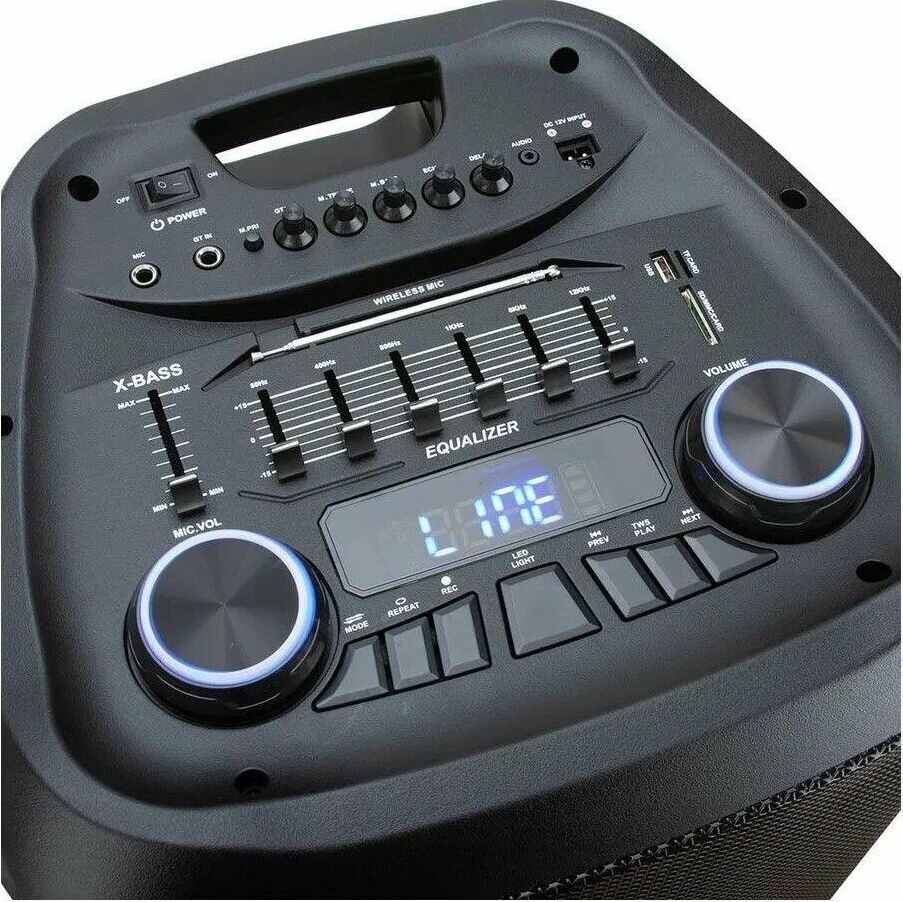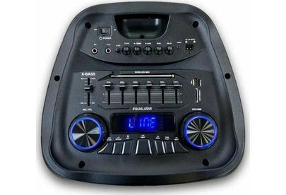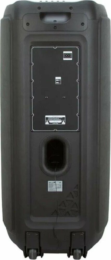 "Режимы воспроизведения: - Bluetooth - Внешний накопитель - Aux Мощность: - RMS 150 Ватт - PMPO 1500 Ватт - Диапазон частот 100Hz-20KHz - Соотношение сигнал/шум 125ДБ - Разделение 50ДБ Питание: - 220V - Встроенный аккумулятор 12V 9000 mAh (до 5 часов работы) Разъемы: - USB - SD + microSD - AUX - Jack 6.3 мм (микрофон-гитара) 2 шт. Комплектация: - Колонка - 2 Беспроводных микрофона - Пульт ДУ - Инструкция - Кабель питания - Кабель AUX (Тюльпан) Размеры: Ширина - 46 см Высота - 105 см Глубина - 41 см Дополнительно: LED подсветка Регулировка громкости микрофона Дисплей Приоритет микрофона Регулировка эхо микрофона Удобная ручка для переноски Колесики 6ти полосный эквалайзер"