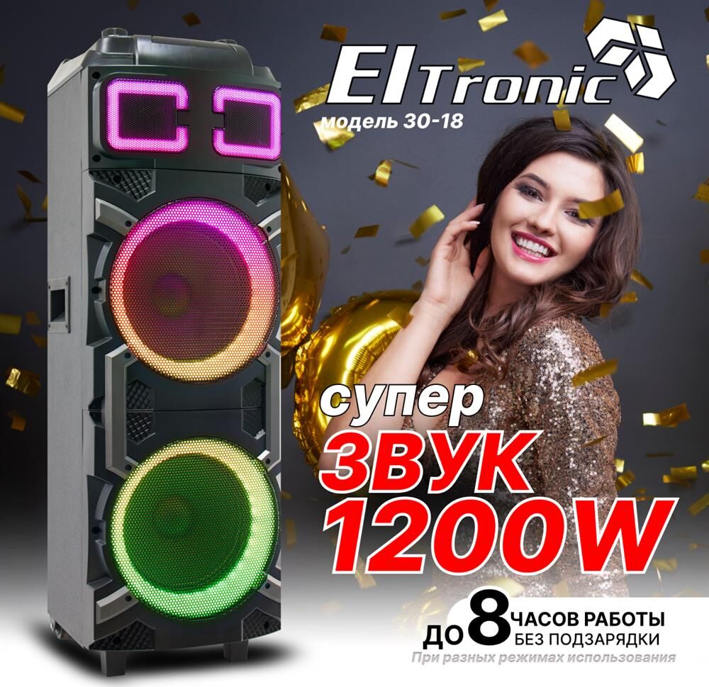 Музыкальный центр ELTRONIC 30-18 (CRAZY BOX 1200) - колонка 10" черный