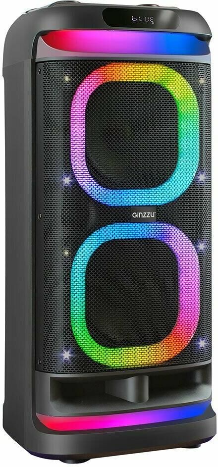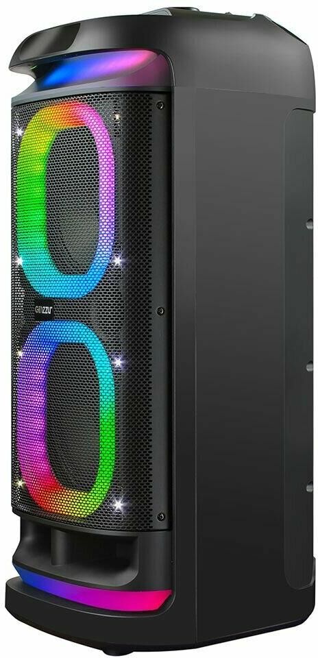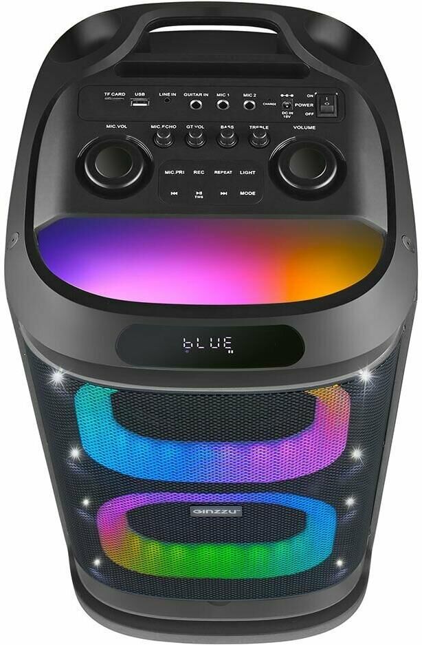 Модель RONDO. ДИНАМИКИ: НЧ/СЧ - 2 х 8 дюймов, ВЧ - 1 х 1 дюйм. Регулировка высоких и низких частот. КАРАОКЕ функция - два микрофона. Аудио вход для электрогитары. ДИНАМИЧЕСКАЯ RGB подсветка динамиков. ЭКВАЛАЙЗЕР: POP, ROCK, JAZZ, CLASSIC, FLAT. Аккумулятор 12V /4500 мАч. FM РАДИО: 87,5-108,0 МГц. АУДИО-ПЛЕЕР: USB-flash и микро SD-card. AUX: DC-jack 3,5 мм. Пульт дистанционного управления. Диапазон воспроизводимых частот - 40 Hz - 20 kHz.