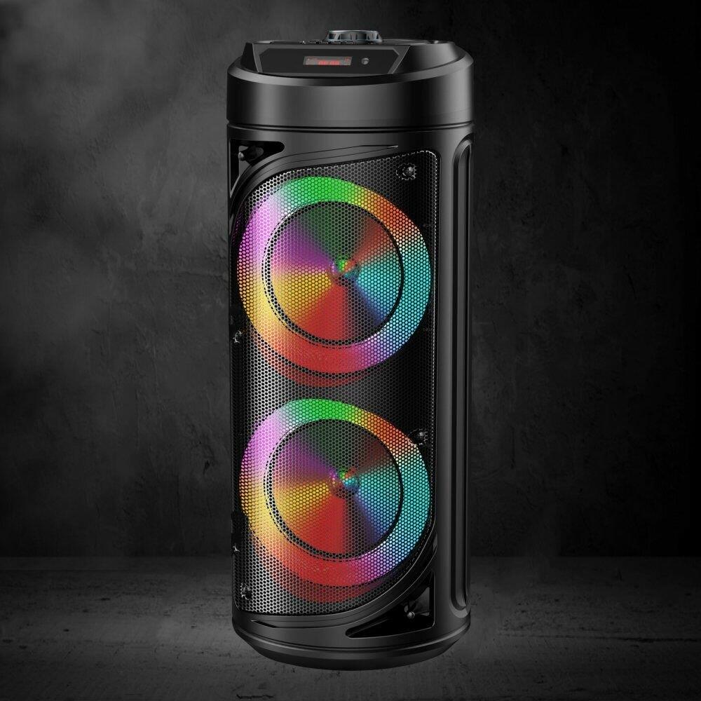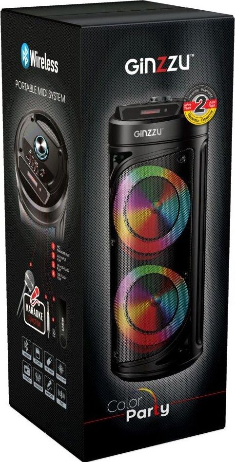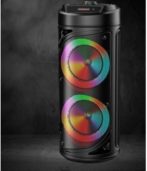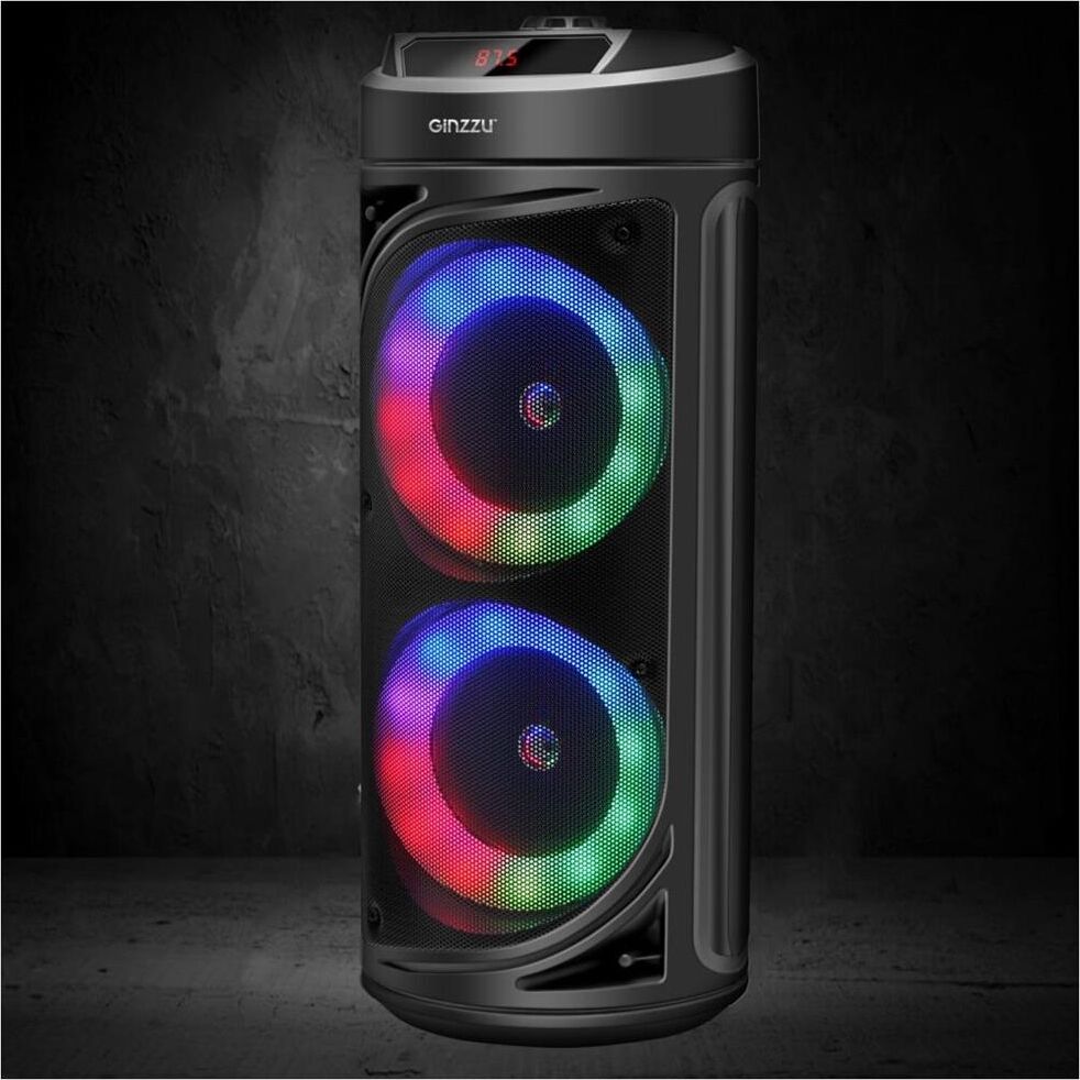 Выходная мощность (RMS) - 30Вт. ДИНАМИКИ: НЧ/СЧ/ВЧ - 2 х 6,5 дюймов. КАРАОКЕ функция - микрофон DC-jack 6,5 мм. ДИНАМИЧЕСКАЯ RGB подсветка динамиков Встроенный аккумулятор Li-Ion, 3.7В /3000 мАч. BLUETOOTH: V5.0 Поддержка режима TWS. FM РАДИО: 87,5-108,0 МГц. АУДИО-ПЛЕЕР: USB-flash и микро-SD card. AUX: DC-jack 3,5 мм. Пульт дистанционного управления. Диапазон воспроизводимых частот: 45 Гц - 19 КГц. ГАРАНТИЯ 2 ГОДА.