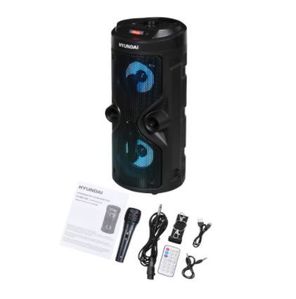 минисистема, микрофон, пульт ДУ, USB-кабель, кабель питания