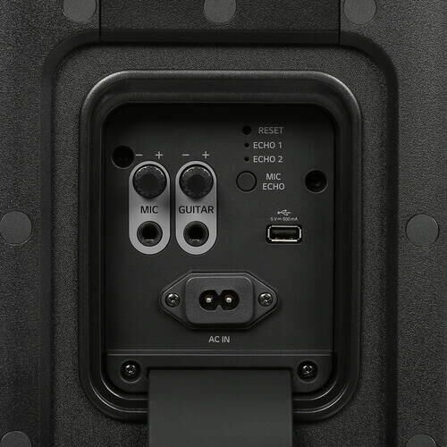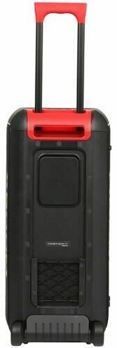 Тип минисистема. Суммарная мощность (RMS)250 Вт. Подсветка ДА. Поддерживаемые аудио форматыMP3, WMA. Интерфейс USB Да. Микрофонный вход ДА. Bluetooth Да. Караоке ДА. Особенности Колеса. Вход для гитары 6.3mm. Пользовательский эквалайзер - только в приложении. Время работы от встроенной батареи 20 ч. Цвет черный. Размеры сабвуфера 310x700x316мм. Вес товара 15.5 кг. Телескопическая ручка ДА.