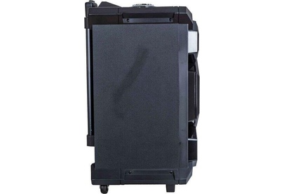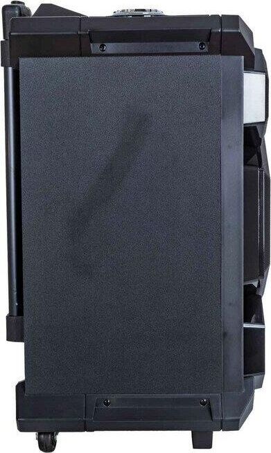 Выходная мощность RMS, Вт.: 120 Поддержка Bluetooth: есть Поддержка A2DP: есть Радио-тюнер: FM Регулировка низких и высоких частот: есть Эхо-эффект канала микрофона: есть Функция караоке: есть Аудио форматы: MP3/WMA/FLAC/WAV/APE/AAC Подсветка: 3-х цветная светодиодная Интерфейсы: вход для подключения микрофона, вход для подключения гитары, USB разъем, SD разъем, двухканальный линейный вход Комплектация: миди-система, адаптер питания, аудиокабель, полнофункциональный пульт ДУ, гарантийный талон, инструкция на русском языке Материал корпуса: пластик Цвет: черный Аккумулятор, мАч.: 4500 Электропитание, В., Гц.: 100-240, 50-60 Максимальная потребляемая мощность, Вт.: 800