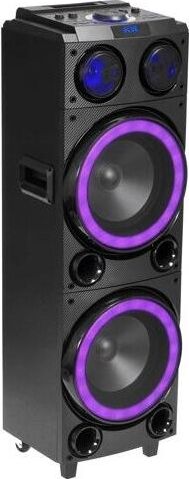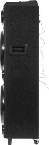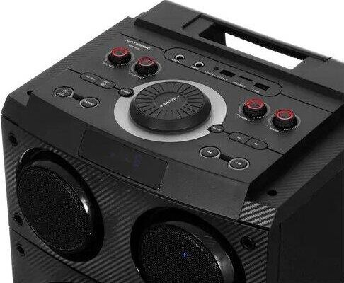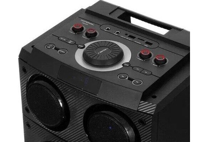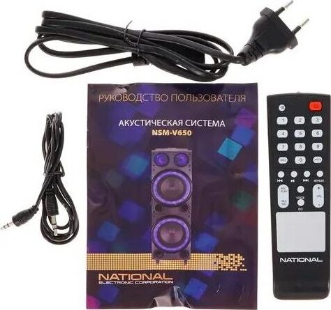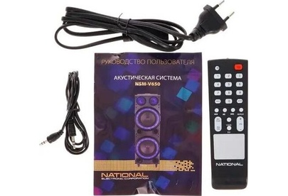 Выходная мощность RMS, Вт.: 150 Поддержка Bluetooth: есть Поддержка A2DP: есть Радио-тюнер: FM Регулировка низких и высоких частот: есть Эхо-эффект канала микрофона: есть Функция караоке: есть Аудио форматы: MP3/WMA/FLAC/WAV/APE/AAC Подсветка: 7-ми цветная светодиодная Интерфейсы: 2 входа для подключения микрофона, USB разъем, TF разъем, двухканальный линейный вход Комплектация: миди-система, адаптер питания, аудиокабель, полнофункциональный пульт ДУ, гарантийный талон, инструкция на русском языке Материал корпуса: пластик Цвет: черный Аккумулятор, мАч.: 4500 Электропитание, В., Гц.: 100-240, 50-60 Максимальная потребляемая мощность, Вт.: 1000
