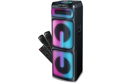 Мощность: 200 Вт. Количество динамиков, диаметр: 2 х 254 мм. Функционал: Bluetooth, FM-радио, MP3-плеер (USB / MicroSD), AUX, управляемая RGB-подсветка, TWS. Емкость аккумулятора / напряжение: 8000мАч / 11 В. Зарядка от сети 220В напрямую (без адаптера). Время автономной работы: до 8 часов. В комплекте: кабель с вилкой 220В, 2 микрофона, беспроводной пульт ДУ, инструкция пользователя. Деревянный корпус с двумя фазоинверторами. Значительно лучше пластика гасит вторичные колебания внутри корпуса, делая звук чище. Размеры колонки (без упаковки): 1010мм х 340мм х 350мм. Ролики с фиксаторами. Приглушение голоса, запись с микрофонов на флешку, порт USB для зарядки устройств.