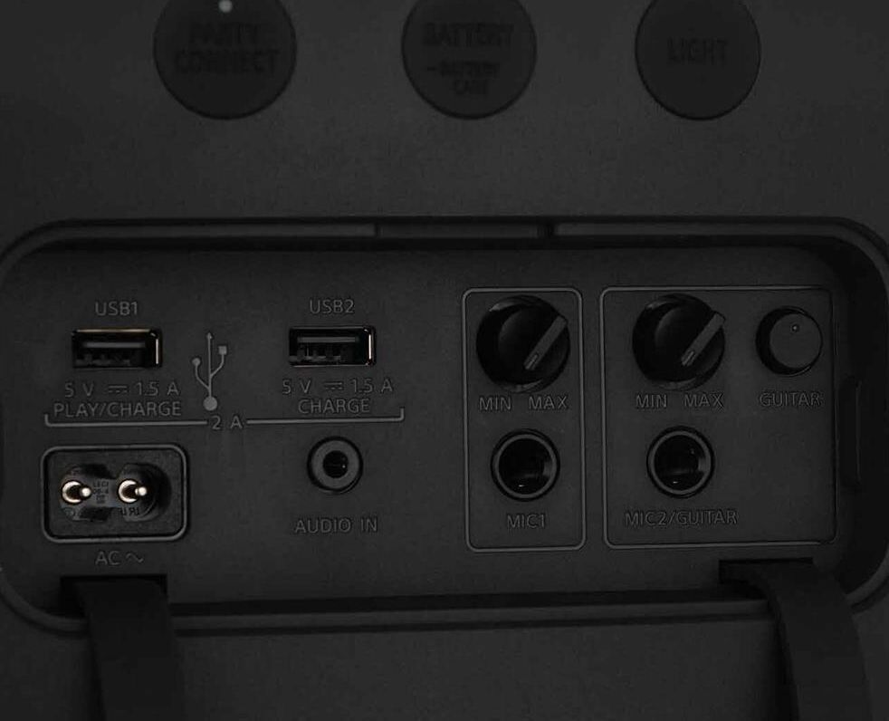 Общая выходная мощность 100 Вт. Диапазон частот 20-2000 Гц. Количество динамиков 6. Количество ВЧ-динамиков 3 передних, 1 задний. Диаметр ВЧ-динамика 60 мм, задний 50 мм. Количество НЧ-динамиков 2. Диаметр НЧ-динамика 170 мм. Тип управление электронное. Управление c мобильного устройства да. Поддержка мобильного приложения Sony Music Center. Порт USB 2.0 2. Вход для микрофона 3.5 мм 1. Разъем для микрофона 6.3 мм 1. Порт RCA 1. Поддержка Bluetooth да. Версия Bluetooth 5.0. Профиль A2DP да. Профиль AVRCP да. Радиус действия 30 м. Питание от сети. Тип элементов питания собственный аккумулятор. Время работы в режиме музыки 25 ч. Время зарядки 3 ч.