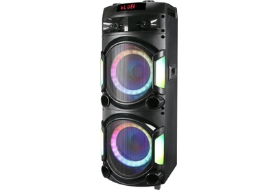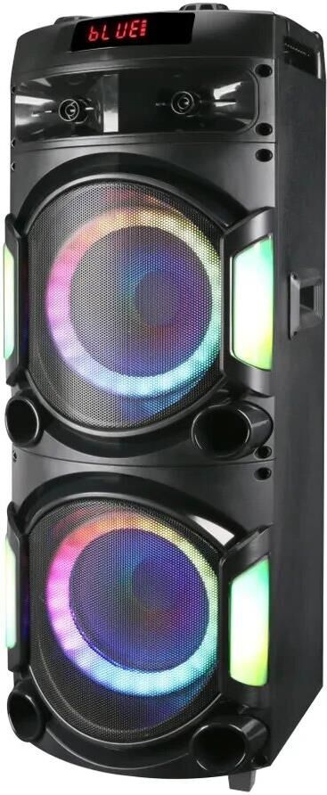 Воспроизведение музыкальных файлов в формате MP3/WMA/FLAC/WAV/APE/AAC. Bluetooth. Поддержка A2DP. FM тюнер. 7 режимов и 7 цветов светодиодной подсветки. Функция караоке. 2 входа для подключения микрофона. Эквалайзер, эхо-эффекта микрофона. USB разъем. Линейный вход.Разъем для микро SD карты. Пульт дистанционного управления. Максимальная мощность: 1000 Вт. Акустическая система RMS: 150 В. Питание: ~100 - 240 В, 50-60 Гц. Встроенный аккумулятор: 7 Ач.