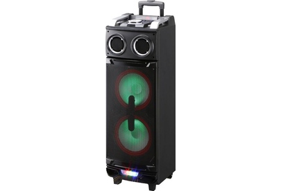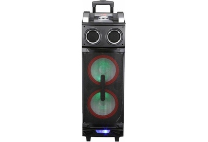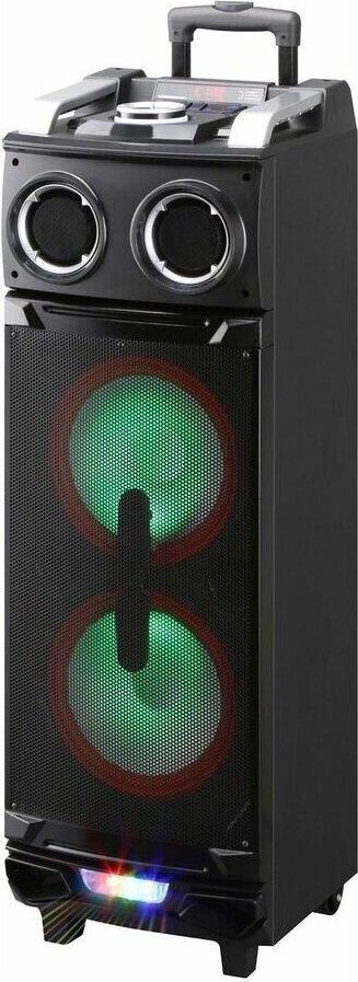 Номинальная выходная мощность, Вт 180. Поддержка Bluetooth есть (с поддержкой A2DP). Радио-тюнер есть (FM). Регулировка низких и высоких частот есть + эхо-эффекта канала микрофона. Функция караоке есть. Аудио форматы MP3/WMA/FLAC/WAV/APE/AAC. Карта памяти SD. USB порт есть. Подсветка 7-ми цветная. Вход для подключения гитары есть. Вход для микрофона есть. Двухканальный линейный вход есть. Максимальная мощность, Вт. 1000. Аккумулятор встроенный 4,5 Ач. Питание ~100-240 В, 45-60 Гц.