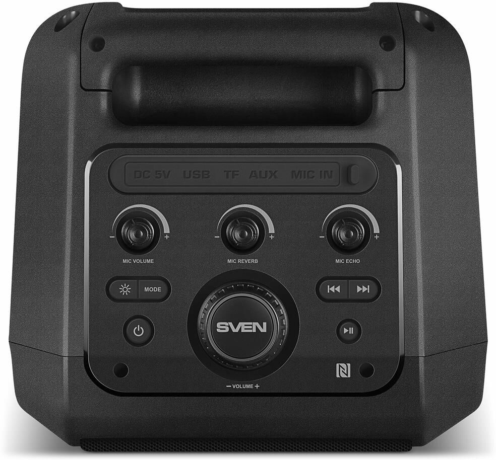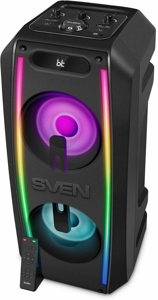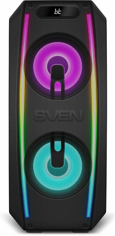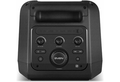 Выходная мощность 100 Вт . Динамическая отключаемая RGB подсветка . Беспроводное подключение двух колонок к одному источнику звука (TWS) .Два микрофонных входа для караоке . Регулировка уровня эха караоке микрофона . Воспроизведение музыки с USB flash и microSD карт памяти . LED дисплей . Пульт ДУ . Функция эквалайзера . FM-радио* . Быстрое подключение по Bluetooth с помощью NFC** . Встроенный Li-Ion аккумулятор . Поддерживаемые аудиоформаты MP3, WAV, WMA, FLAC . литий-ионный aккумулятор: 7.4В, 4400мА*ч .