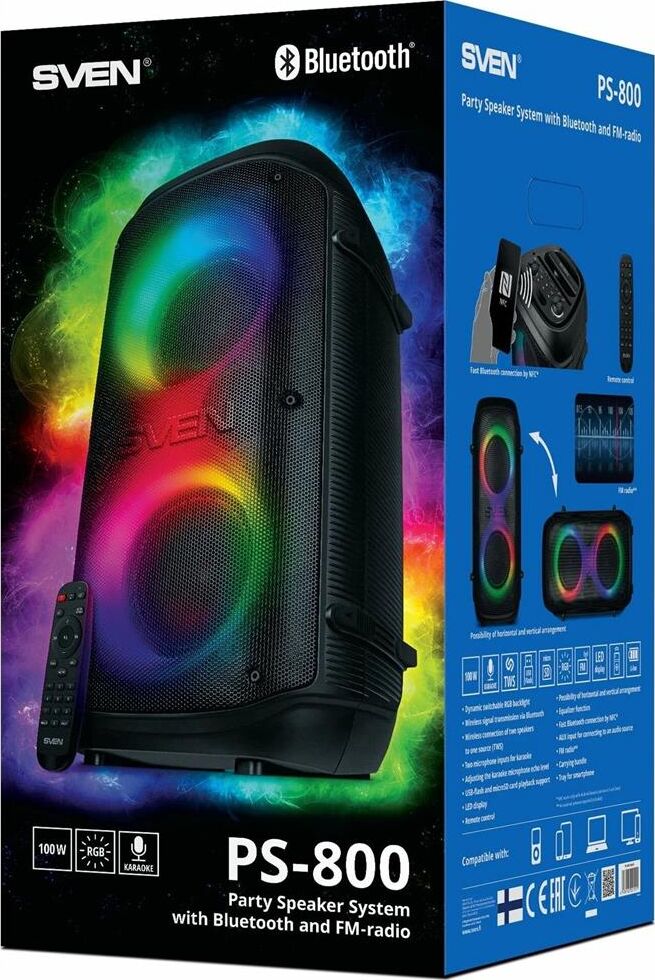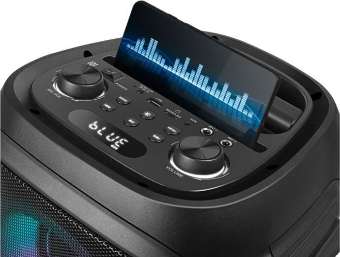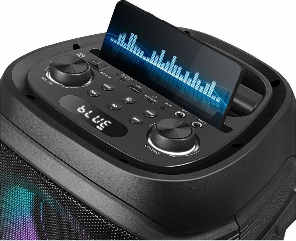 Выходная мощность (RMS), Вт 100 (2 ? 50) Частотный диапазон, Гц 40 – 22 000 Диапазон частот тюнера, МГц 87.5 – 108 Размеры динамиков, мм ВЧ: O 38, НЧ: O 145 Беспроводная передача сигнала по Bluetooth да Воспроизведение музыки с носителей памяти USB, microSD Источник питания Литий-ионный aккумулятор: 7.4В, 4400мА*ч (32.56Вт*ч) DC 9 V Номинальный ток потребления, А 0,05 Тип соединения Bluetooth, проводной Радиус действия, м до 10 Динамическая отключаемая RGB подсветка Передача сигнала по Bluetooth LED-дисплей Два микрофонных входа для караоке
