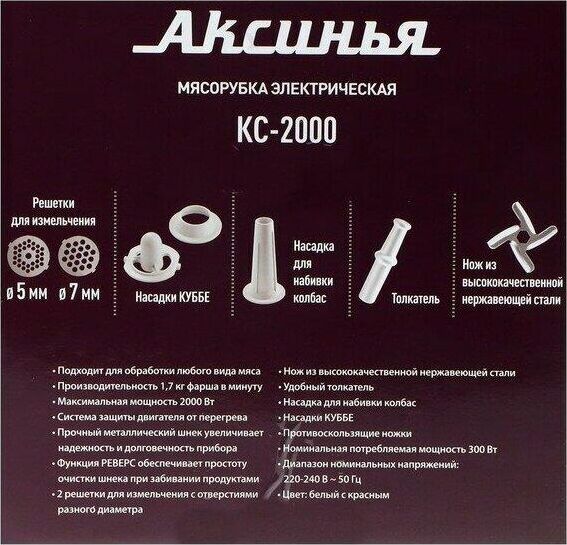 Мясорубка АКСИНЬЯ КС-2000 белый с красным