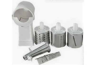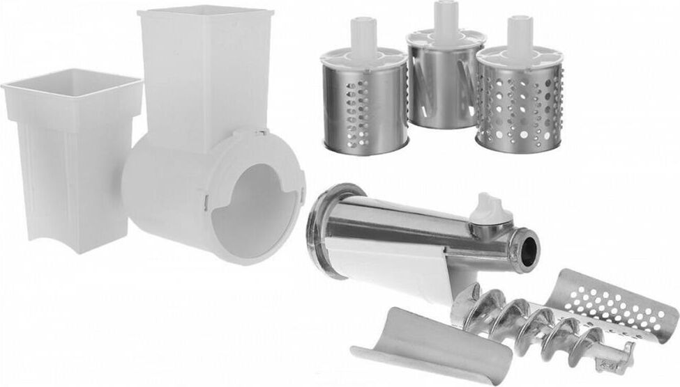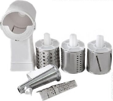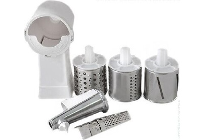 Комплект приставок АМ 11.02. Комплект приставок АМ 11.02 к электромясорубкам (ко всем моделям кроме М61, М62, М641, М642). Состоит из: приставка-соковыжималка АМ11.04, приставка-овощерезка АМ11.03-04 (4 барабана). Цвет белый, оранжевый
