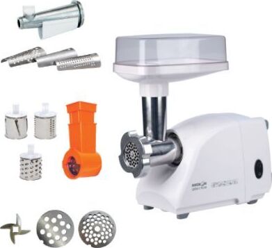 Номинальная потребляемая мощность 160 Вт * Габаритные размеры (ШxВxГ) 25,6/15,25/ 18,25 см * Производительность 0,5 кг/мин * Мощность 600 Вт * Вес 3,9 кг * Цвет Белый * Защита двигателя от перегрузки; Экономия электроэнергии без ущерба качеству; Отсек для хранения шнура питания; 2 вида решеток для получения фарша разной консистенции - с диаметром отверстий 4,9 мм и 7 мм; Высокое размещение шнековой камеры; Устойчивые нескользящие ножки для фиксации мясорубки на поверхности стола;