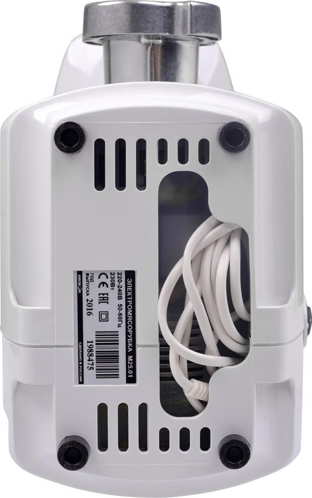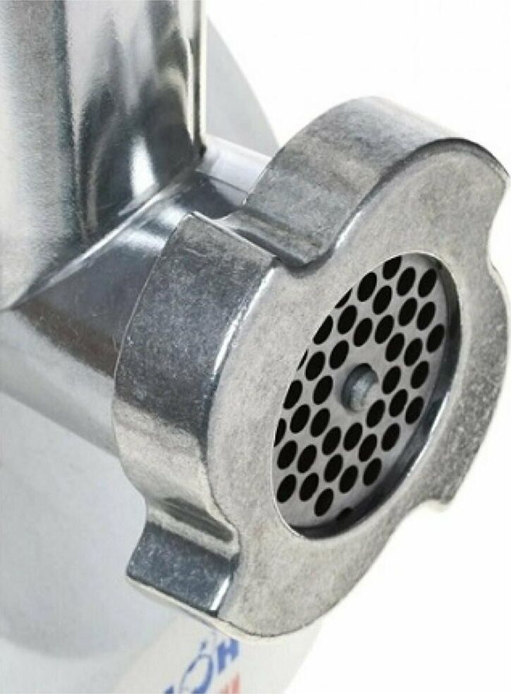 максимальная мощность 1500 Вт, номинальная мощность 230 Вт, производительность — 50 кг/час, масса — не более 5 кг, решетка с отверстиями O 5 мм, решетка с овальными отверстиями, нож с саблевидной режущей кромкой.