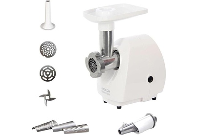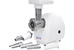 максимальная мощность 1500 Вт, номинальная мощность 230 Вт, производительность — 50 кг/час, Насадки насадка для приготовления колбас, диск для фарша Диск для фарша 2 в комплекте, диаметр отверстий 4.9 мм Соковыжималка шнековая Материал лотка пластик Материал корпуса пластик Можно мыть в посудомоечной машине Прорезиненные ножки Вес 3,5 кг Цвет белый