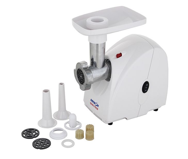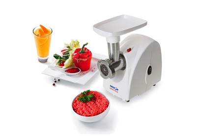 максимальная мощность 1500 Вт, номинальная мощность 230 Вт, производительность — до 100 кг/час, масса — 4 кг, функция РЕВЕРС, отсек для хранения решеток и сетевого шнура, решетка с отверстиями д. 5 мм, решетка с отверстиями д. 7 мм, Отключение при перегреве Материал корпуса пластик Вес 3,6кг Цвет пластик
