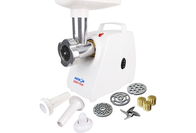 Мощность 1500 Вт * Производительность 1,66 кг/мин * Размеры 0,29 х 0,19 х 0,27 * Вес 3,8 кг * Высокопроизводительная, мощная мясорубка имеющая функцию реверс, позволяющую кратковременно поворачивать шнек в обратном направлении. • функция реверс поможет избавиться от намотавшихся на шнек и пленок • три решетки с отверстиями различного размера, входящие в комплект поставки, позволяют получить фарш различной консистенции. Решетка с отверстиями овальной формы поможет приготовить холодец и нарезать на мелкие кусочки мясо или овощи