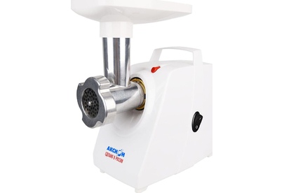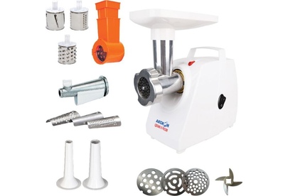 Габариты 0,30 х 0,19 х 0,40 Вес 4,9 кг. Мощность1500 Вт Производительность 1,66 кг/мин Материал Пластик Защита двигателя от перегрузки; Удобное хранение ножа и решеток; 3 вида решеток для получения фарша разной консистенции - с диаметром отверстий 4,9 мм и 7 мм, а также овальными отверстиями; Высокое размещение шнековой камеры; Ручка для переноски; Устойчивые нескользящие ножки для фиксации мясорубки на поверхности стола