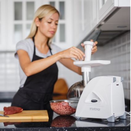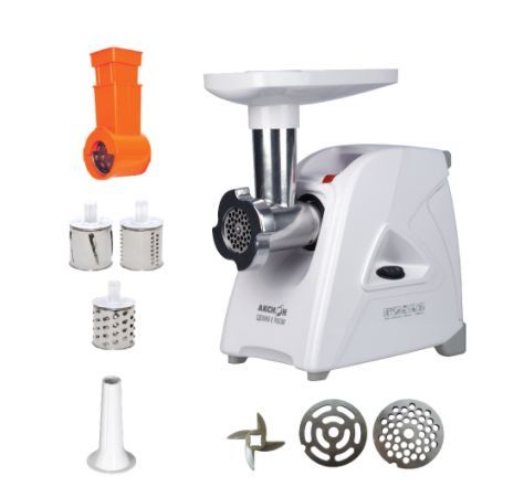 Номинальная потребляемая мощность 230 Вт * Производительность 1,7 кг/мин * Реверс * Мощность 1500 Вт * Двойная защита от перегрузки; Функция «реверс» для предотвращения наматывания жилок на шнек; Отсек в корпусе для шнура питания, хранения ножа и насадок; 3 вида решеток для получения фарша разной консистенции - с диаметром отверстий 3,5 мм и 7 мм, а также овальными отверстиями; Экран для защиты от брызг, который поможет сохранить кухню в чистоте; Высокое размещение шнековой камеры; Возможность вертикального хранения для экономии пространства на кухне; Ручка для переноски; Устойчивые нескользящие ножки для фиксации мясорубки на поверхности стола;