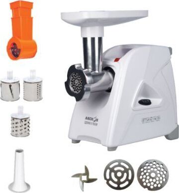 Номинальная потребляемая мощность 230 Вт * Производительность 1,7 кг/мин * Реверс * Мощность 1500 Вт * Двойная защита от перегрузки; Функция «реверс» для предотвращения наматывания жилок на шнек; Отсек в корпусе для шнура питания, хранения ножа и насадок; 3 вида решеток для получения фарша разной консистенции - с диаметром отверстий 3,5 мм и 7 мм, а также овальными отверстиями; Экран для защиты от брызг, который поможет сохранить кухню в чистоте; Высокое размещение шнековой камеры; Возможность вертикального хранения для экономии пространства на кухне; Ручка для переноски; Устойчивые нескользящие ножки для фиксации мясорубки на поверхности стола;