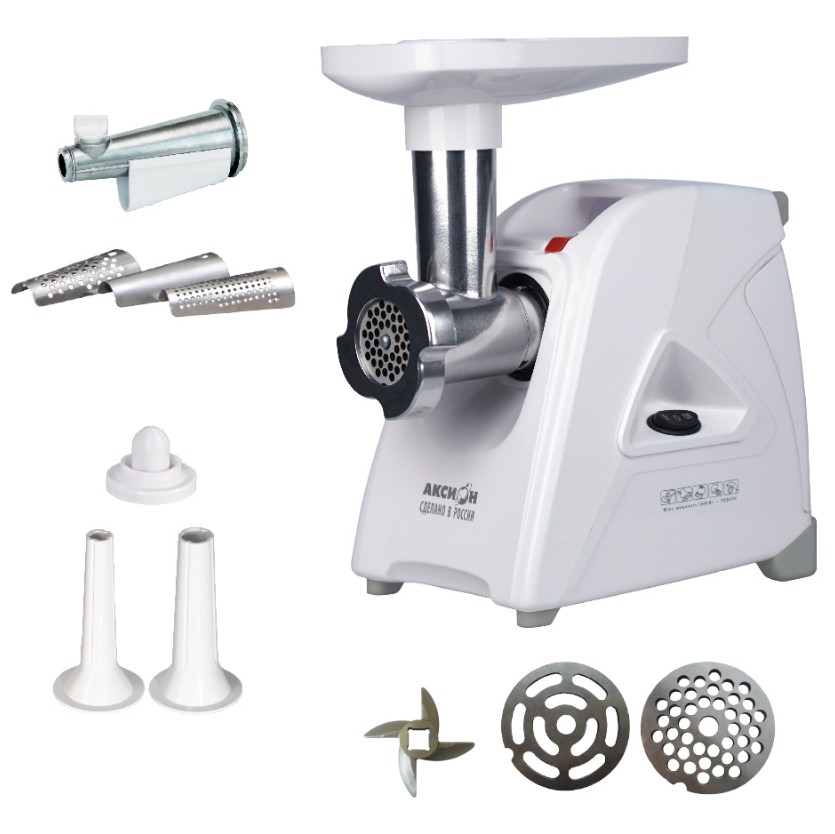 Электрическая мясорубка М35.04 Аксион Мощность1500 Вт Производительность1,7 кг/мин Материал Пластик Размеры0,38 х 0,19 х 0,38 Вес4,4 кг. Функция Реверс Прочный и острый нож с саблевидной кромкой Удобный отсек для хранения шнура и решеток Ручка для переноски Ножки из нескользящего эластичного материала Электрическая мясорубка М35.04 повышенной мощности без труда справится с мясом любого качества. Предназначена для приготовления фарша из мяса, рыбы, грибов; измельчения овощей, фруктов; получения пюреобразных масс из ягод; профилирования теста.
