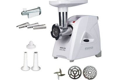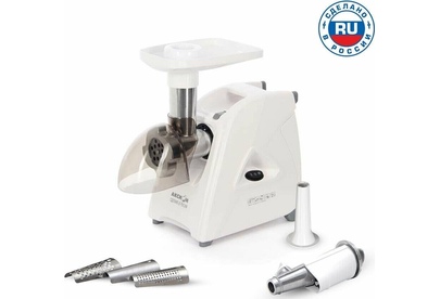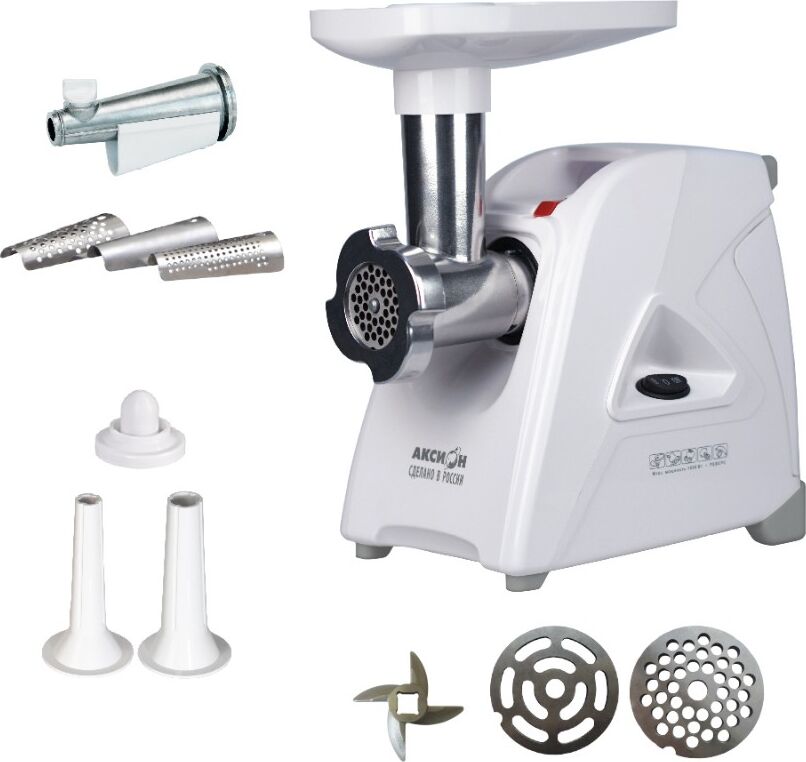 Электрическая мясорубка М35.04 Аксион Мощность1500 Вт Производительность1,7 кг/мин Материал Пластик Размеры0,38 х 0,19 х 0,38 Вес4,4 кг. Функция Реверс Прочный и острый нож с саблевидной кромкой Удобный отсек для хранения шнура и решеток Ручка для переноски Ножки из нескользящего эластичного материала Электрическая мясорубка М35.04 повышенной мощности без труда справится с мясом любого качества. Предназначена для приготовления фарша из мяса, рыбы, грибов; измельчения овощей, фруктов; получения пюреобразных масс из ягод; профилирования теста.