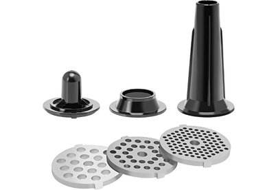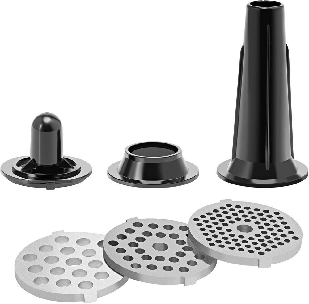 Описание СТАНДАРТНЫЙ НАБОР: Фиксирующая гайка Решётка для крупного помола (7 мм) Решётка для среднего помола (5 мм) Решётка для мелкого помола (3 мм) Самозатачивающийся режущий нож Шнек Загрузочная горловина Загрузочный лоток Толкатель Насадки для приготовления колбасок/сосисок Насадка для приготовления кеббе Характеристики Номинальная потребляемая мощность: 500Вт Максимальная мощность: 2500 Вт Производительность: 2,8 кг/мин Цифровой дисплей Сенсорное управление 6 предустановленных программ Индикация температуры двигателя Автоотключение при перегреве Система крепления «EasyFix» Функция «Блокировка экрана управления» Функция «Реверс» Система защиты двигателя от перегрузки Сверхпрочный редуктор из полимерных композитных материалов Нескользящие ножки Материал корпуса: нержавеющая сталь/ударопрочный пластик Металлический загрузочный лоток