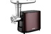 Мощность 1800 Вт. Прочный метал. шнек. Функция РЕВЕРС. 2 решетки для измельчения и рубки. Решетки и нож из высококач. нерж. стали. Удобный толкатель. Насадка для приготовления домашней колбасы. Насадки «КЕББЕ». Материал корпуса металл.