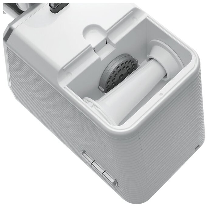 Мощность 2000 Вт. Прочный метал. шнек. Функция РЕВЕРС. 2 решетки для измельчения и рубки. 3 барабана для терки и шинковки. Решетки и нож из высококач. нерж. стали. Удобный толкатель. Насадка для приготовления домашней колбасы. Насадка «КЕББЕ». Клавиши управления. Отсек для насадок.