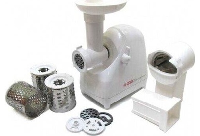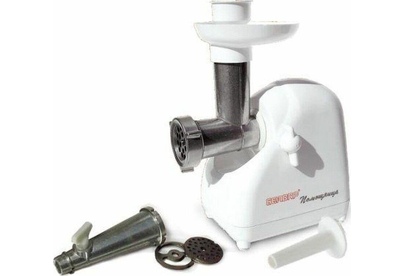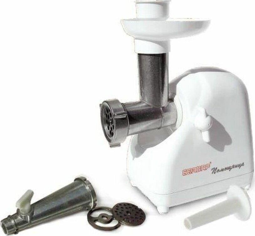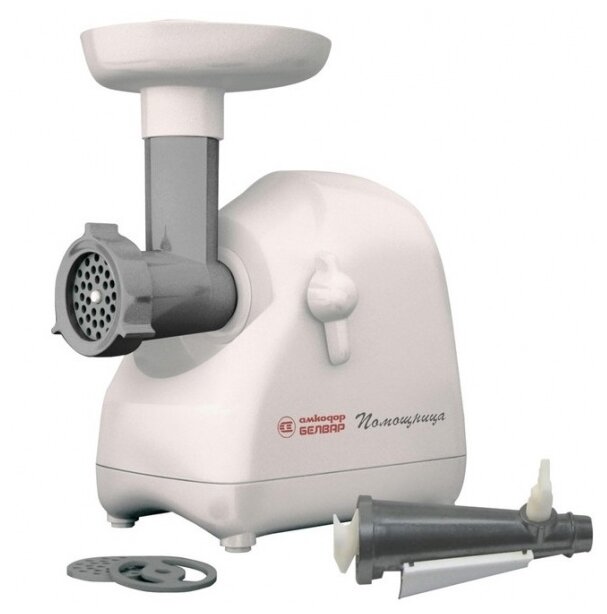 Мясорубка Белвар Помощница КЭМ-П2У 302-10, максимальная мощность 1500 Вт, номинальная от 220 Вт, соковыжималка, реверс, насадка для теста, насадка для колбас, 2 смен. решетки.