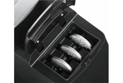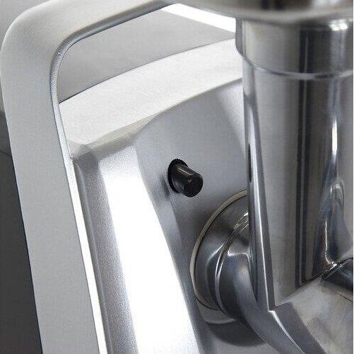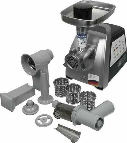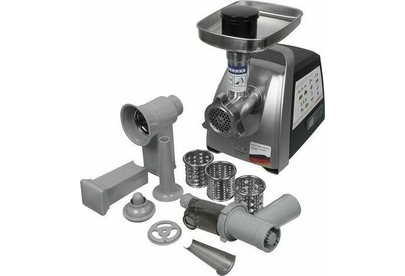 Мощность 800Вт. Пресс д/отжима сока. Быстрая сборка, высокая надежность. Резиновые ножки. Большой загрузочный лоток с толкателем. Насадка д/шинковки и резки, 4 барабана. Насадка д/ кеббе. Насадка д/колбас. Мощность при блок. мотора: 2200 Вт.