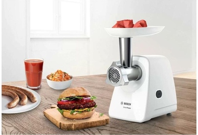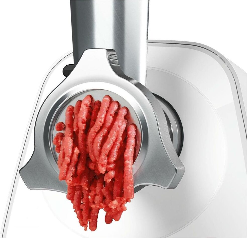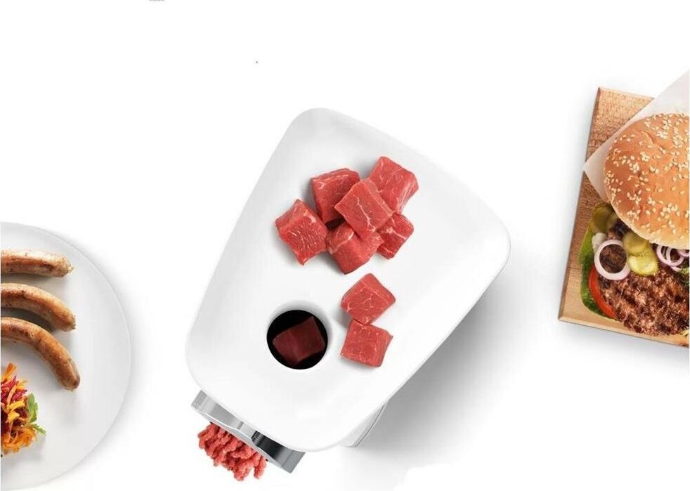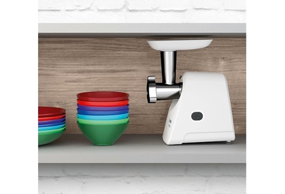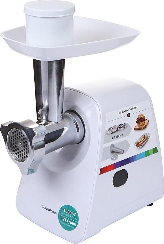 Номинальная мощность 350 Вт. Пиковая мощность 1500 Вт. Производительность 1.8 кг/мин. Насадки 2 диска для фарша. для домашних колбас. Материал корпуса пластик. Материал загрузочного лотка пластик. Защита от перегрузок. Отсек/подставка для хранения насадок. / в пластиковом толкателе /.