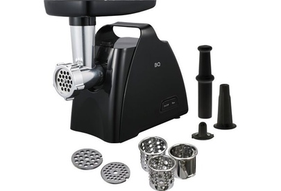 BQ MG1006 BLACK Мощность 2100 Вт Функция реверса 2 диска для разных видов фарша (5 мм и 7 мм) Насадка для колбасок и кеббе Овощерезка с 3 барабанами Нож из нержавеющей стали Мытье в посудомоечной машине