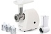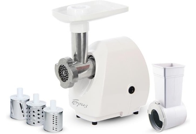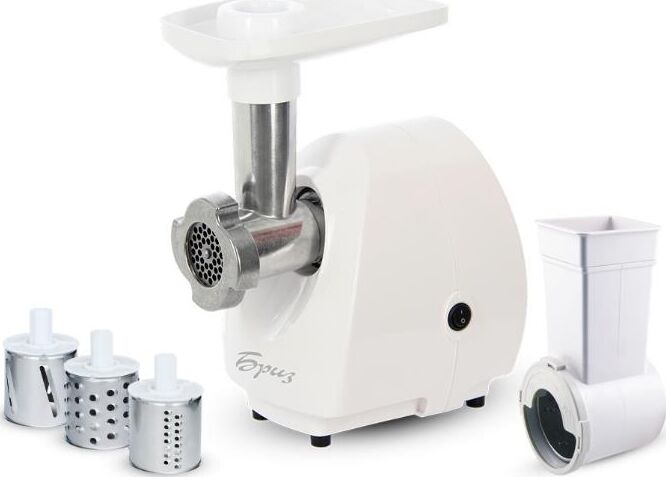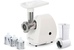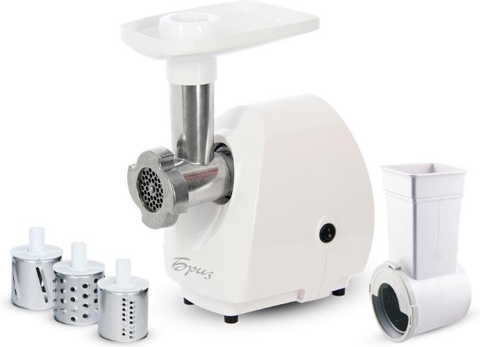 Максимальная мощность — 1000 Вт. Максимальная производительность — 1,3 кг/мин. В комплекте: решётка 5 мм - 1 шт - пластиковый колпачок 1 шт - приставка овощерезка с 3 барабанами (крупная, мелкая терка и шинковка). Преимущества: двойная защита двигателя от перегрузки, высокое размещение шнековой камеры, отсек для хранения шнура питания. экономичное энергопотребление
